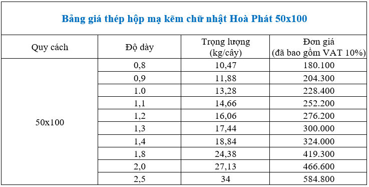 Bảng giá thép hộp chữ nhật Hòa Phát 50×100 mạ kẽm Cập nhật chi tiết[Xem chi tiết]