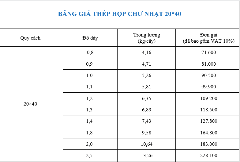 Bảng giá thép hộp chữ nhật mạ kẽm 20×40 Bảng giá thép hộp chữ nhật[Xem chi tiết]